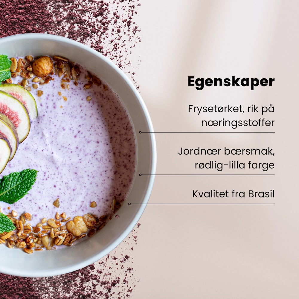 100 % økologisk frysetørket acaibær-pulver fra Brasil*.