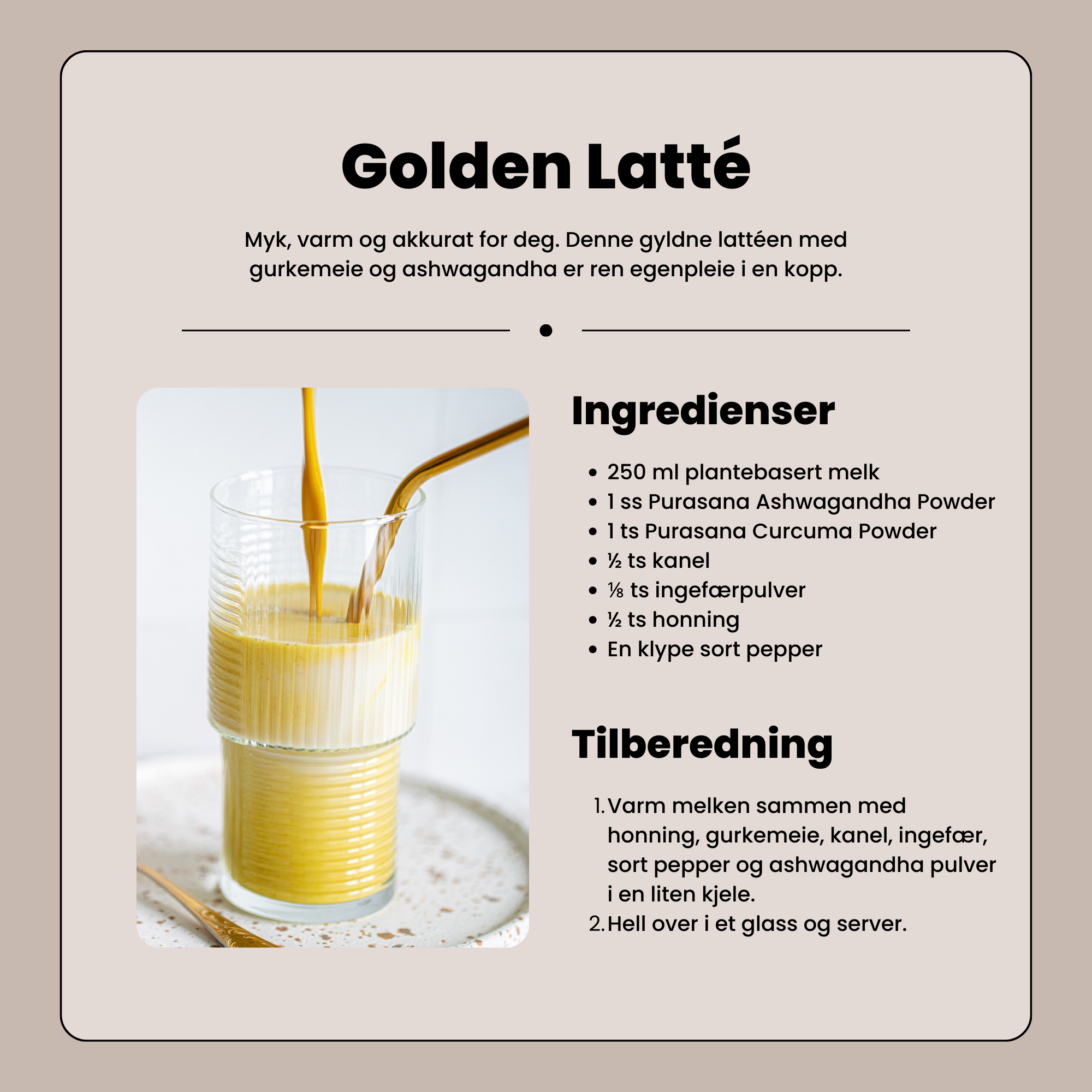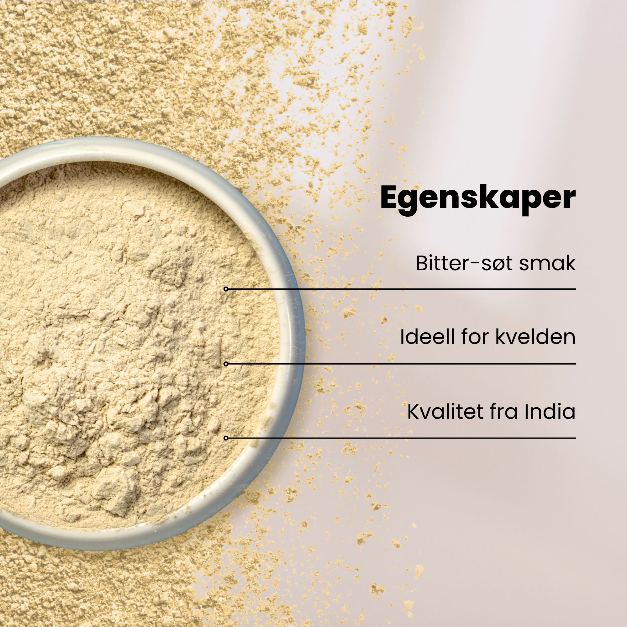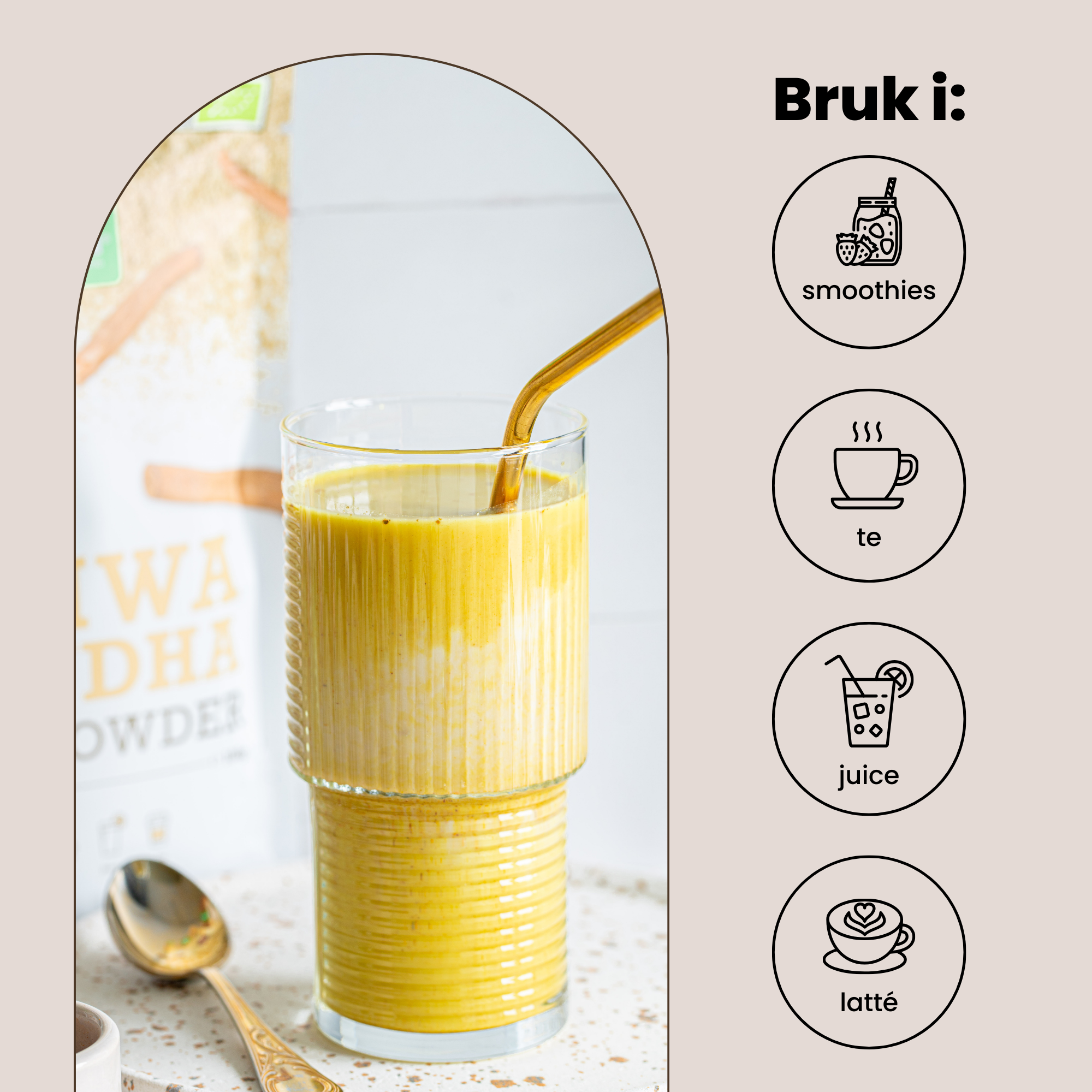 100% økologisk ashwagandapulver som er velegnet til smoothies, te, juice og latte.