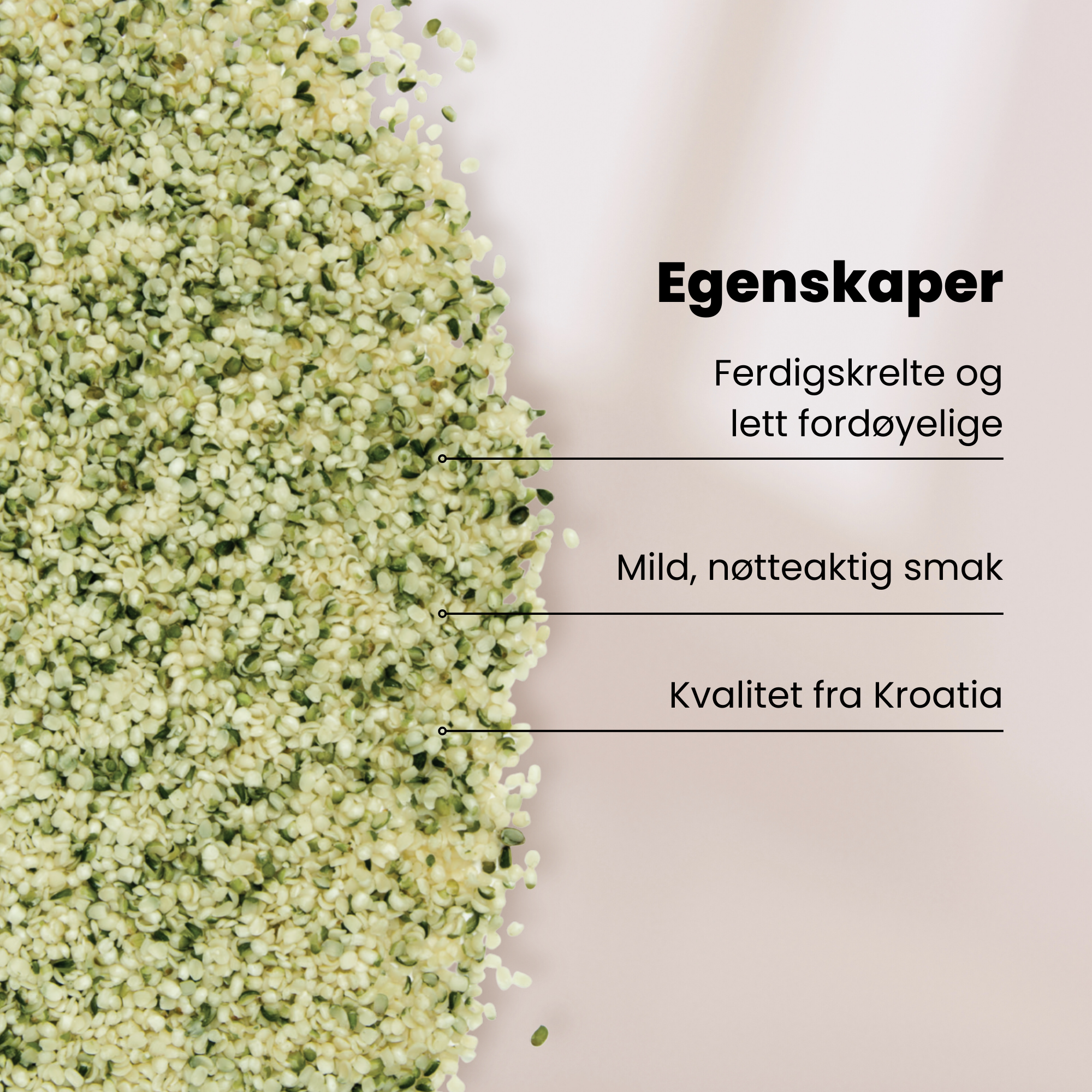 Avskallede hampfrø er det hvite “kjøttet” som ligger igjen etter at skallet er blitt fjernet fra hampfrøet. Dette er naturlig rik på proteiner samt fiber og er en viktig kilde til vitaminer, mineraler og plantenæringsstoffer. Bruksområdene er midt sagt ubegrensede. Kan strøs eller blandes i feks grøt,frokostblandinger, salater, bakverk eller smoothies, eller spises som de er.