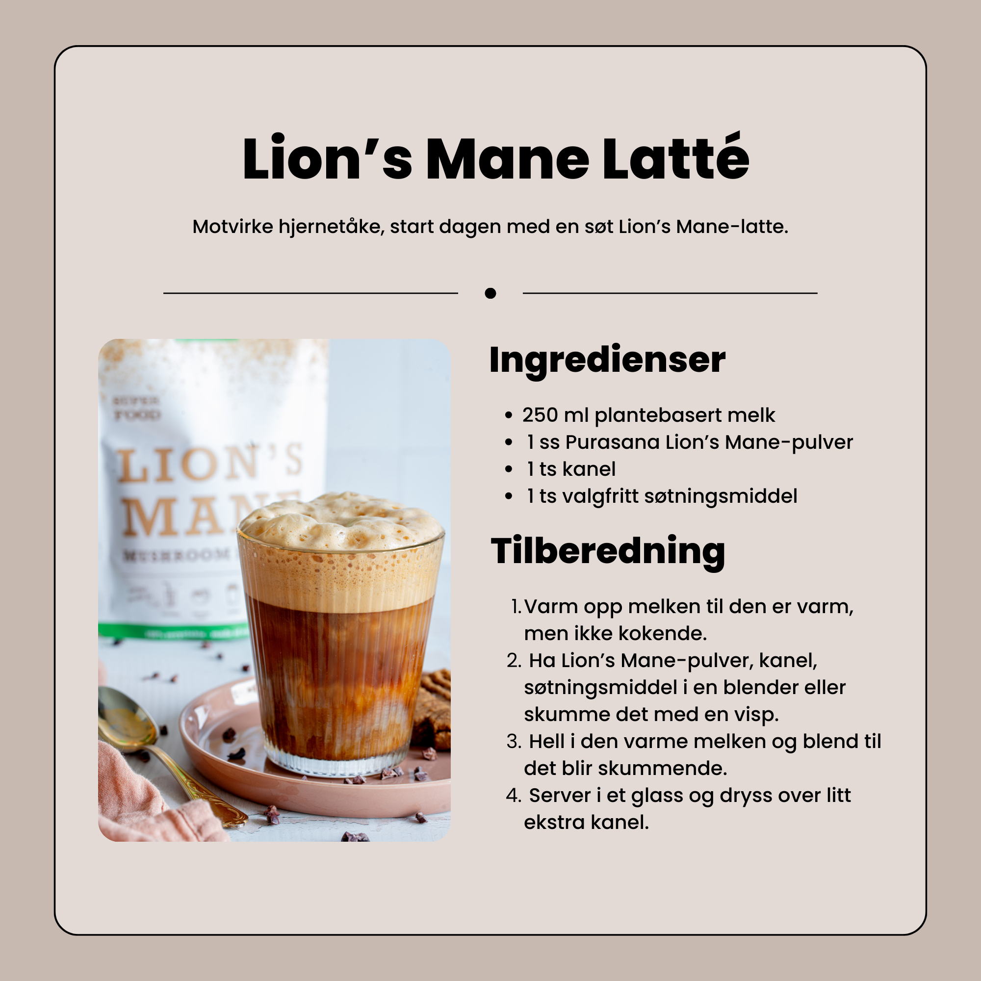 Lion’s Mane er et allsidig produkt som enkelt kan blandes i smoothies, kaffe eller annen drikke. Det passer spesielt godt for deg som ønsker et naturlig supplement til en plantebasert livsstil og et jevnt energinivå i hverdagen.