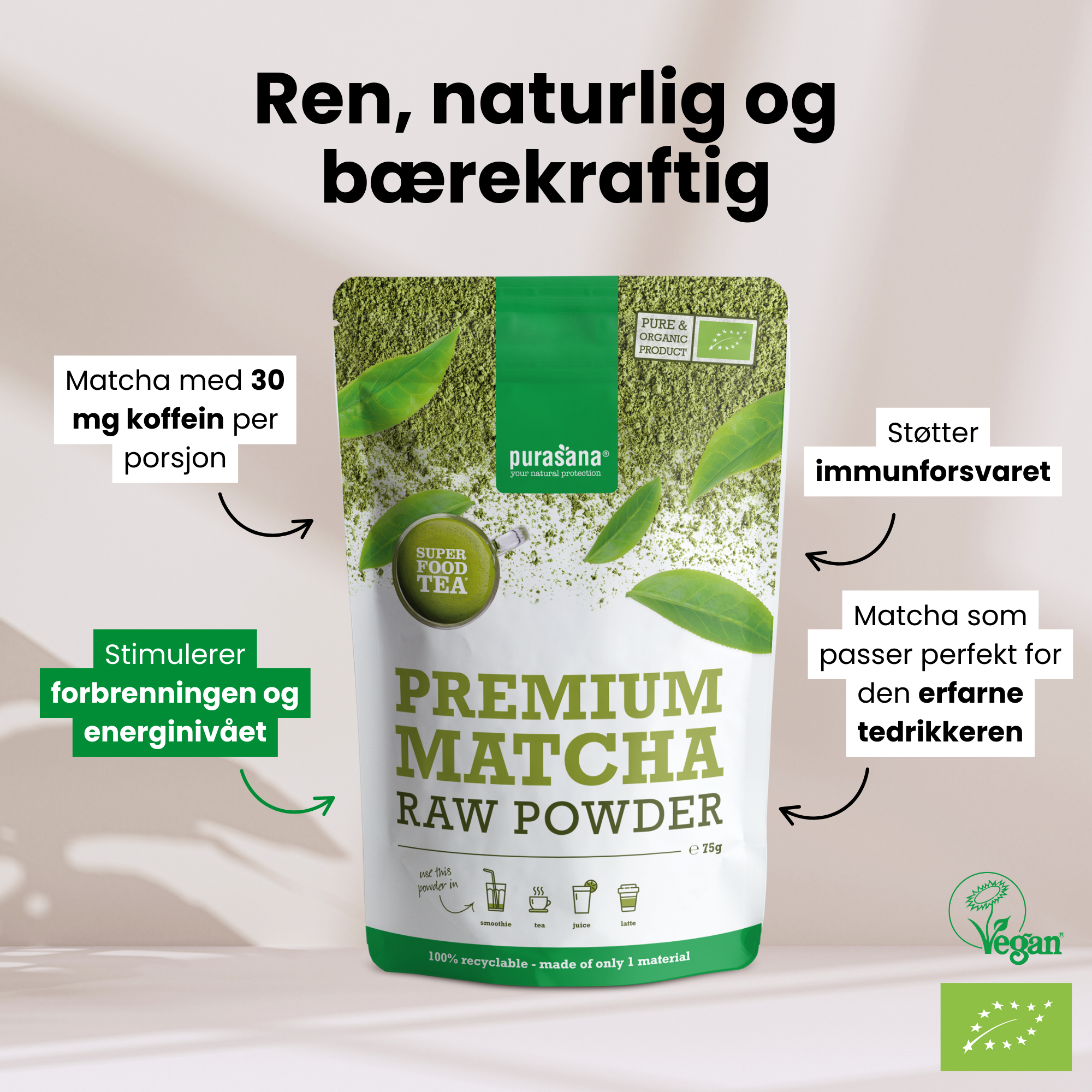 100% økologisk matcha fra Japan (Kagoshima).
