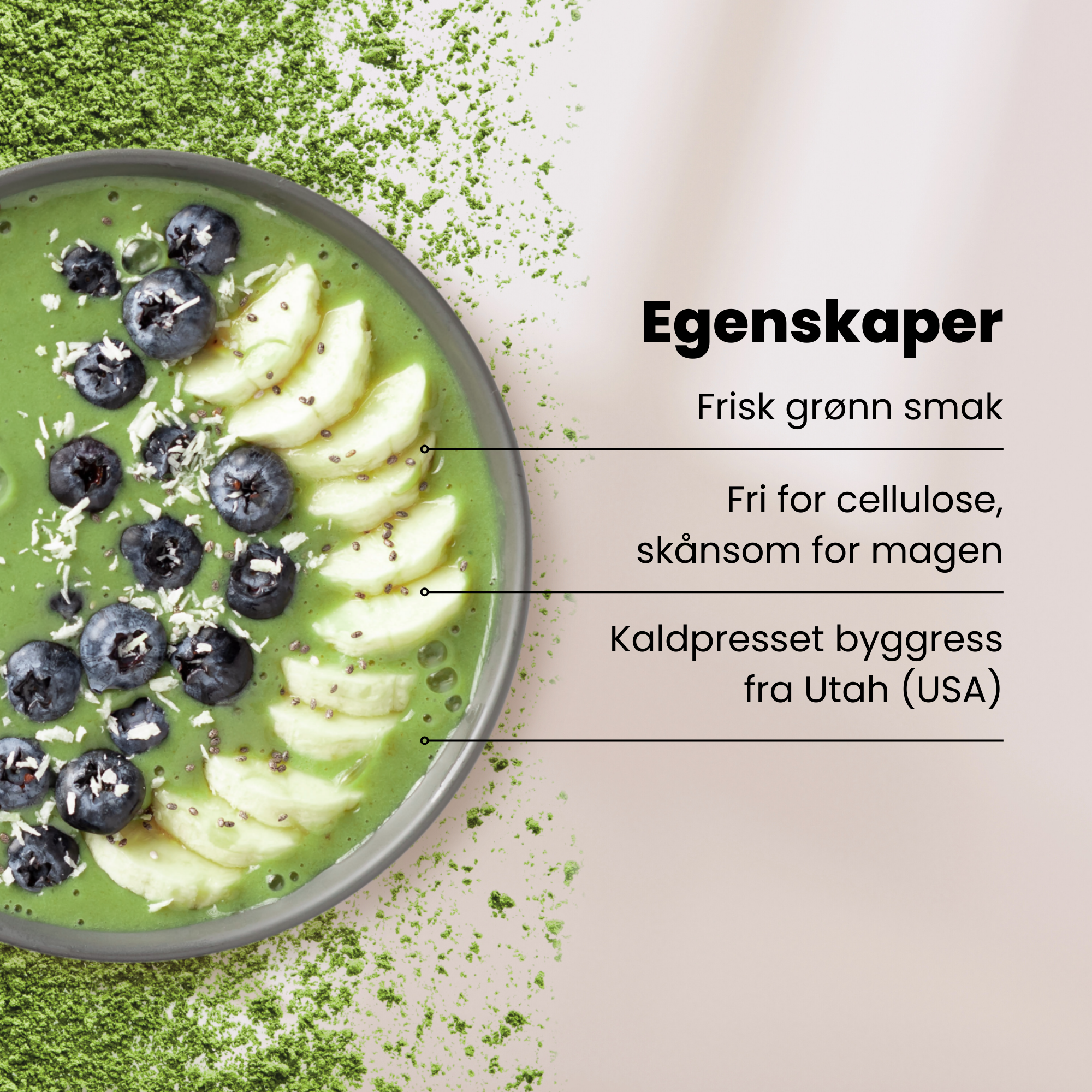 Kaldpresset hvetegresspulver full av fytonæringsstoffer.